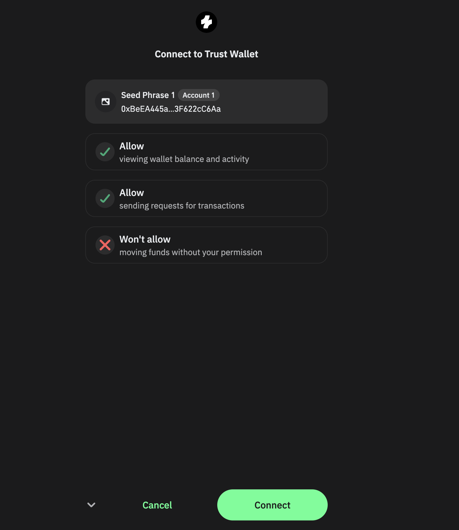 This connection does not authorize any transactions. It’s just a handshake between your wallet and the app.